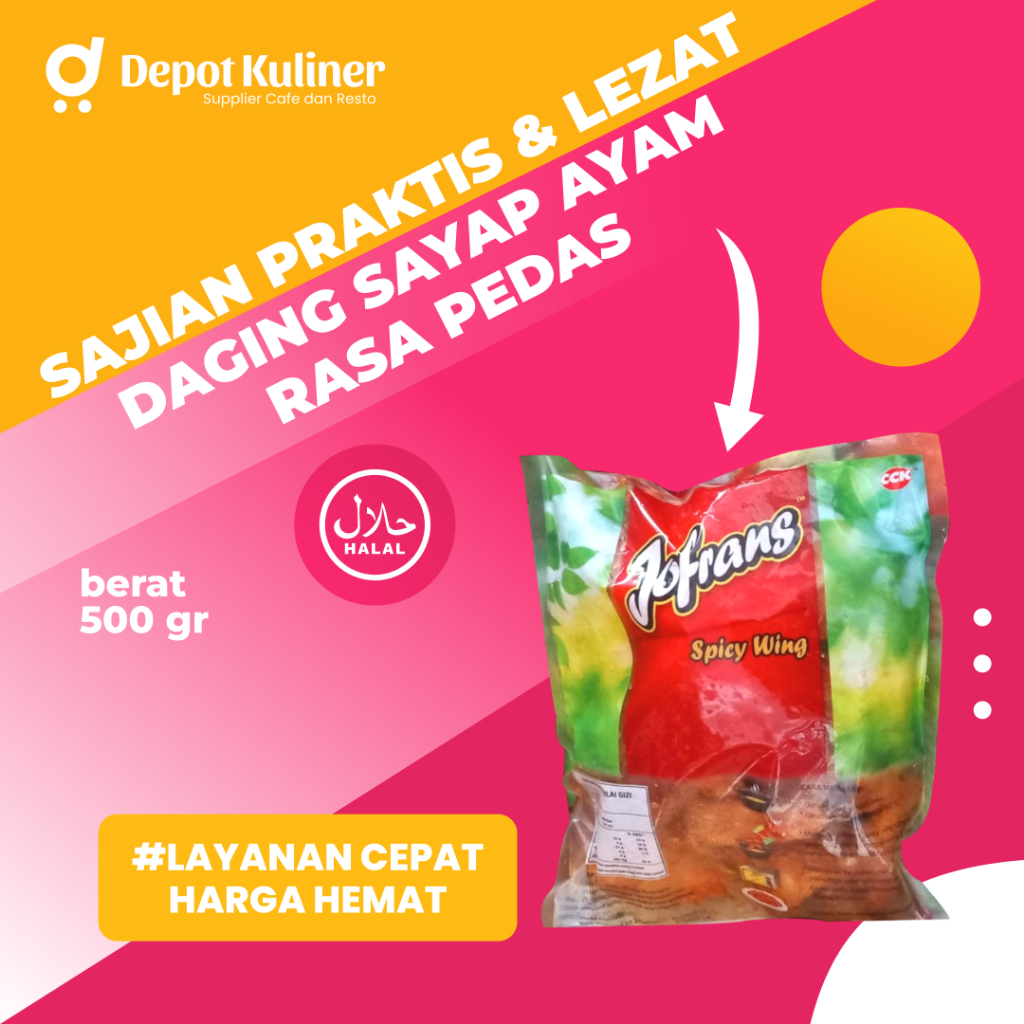 Jofrans Chicken Spicy Wing 500 gr - Daging Sayap Ayam Pedas